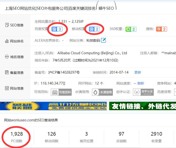 PC端有1928個(gè)關(guān)鍵詞,全網(wǎng)流量有1331-2125個(gè)IP